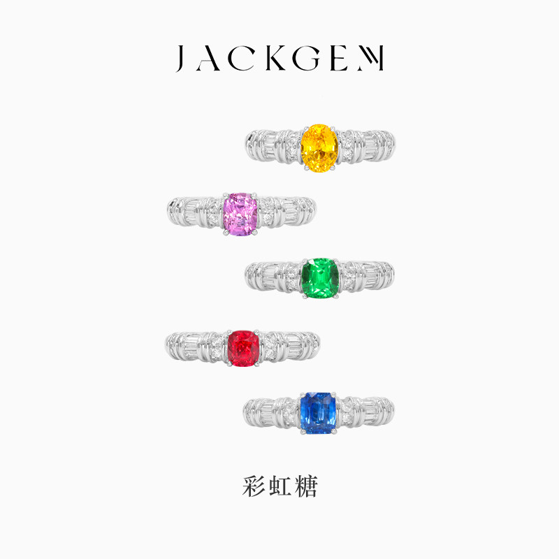 【原创彩虹糖】蓝宝石戒指女尖晶石戒指18k沙弗莱戒指彩宝首饰 S2