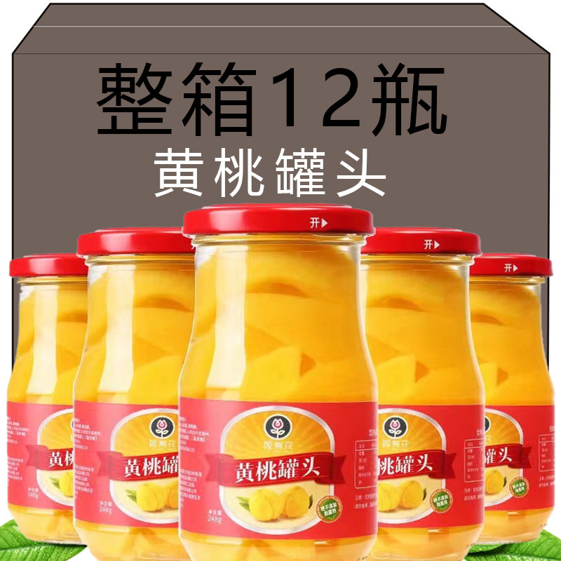 欢乐家糖水黄桃水果罐头玻璃瓶礼盒整箱休闲即食零食