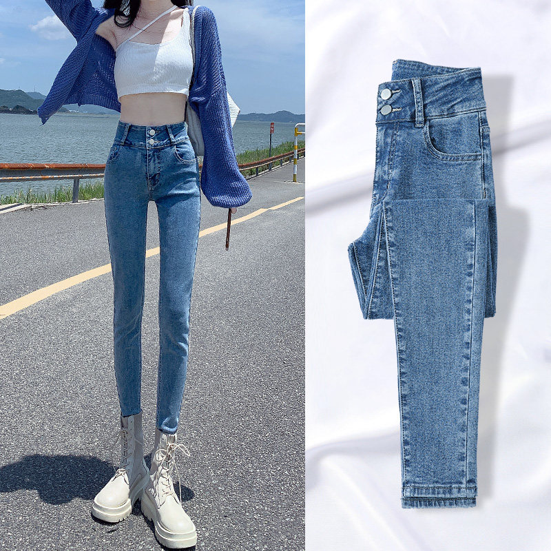 复古紧身小脚牛仔裤女高腰夏2022新款秋季修身弹力显瘦显高铅笔裤