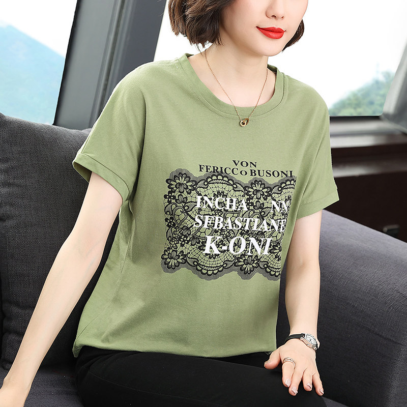 中年妈妈夏装新款纯棉短袖t恤女宽松半袖体恤中老年女装洋气上衣