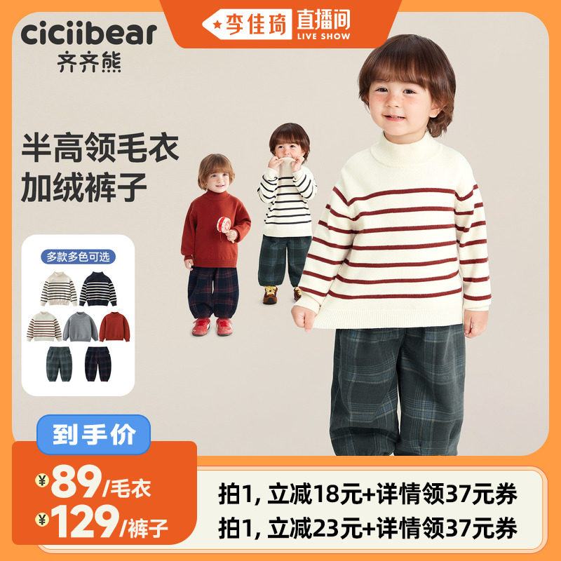 【李佳琦直播间】齐齐熊男童新年打底毛衣裤子冬款宝宝格子裤儿童