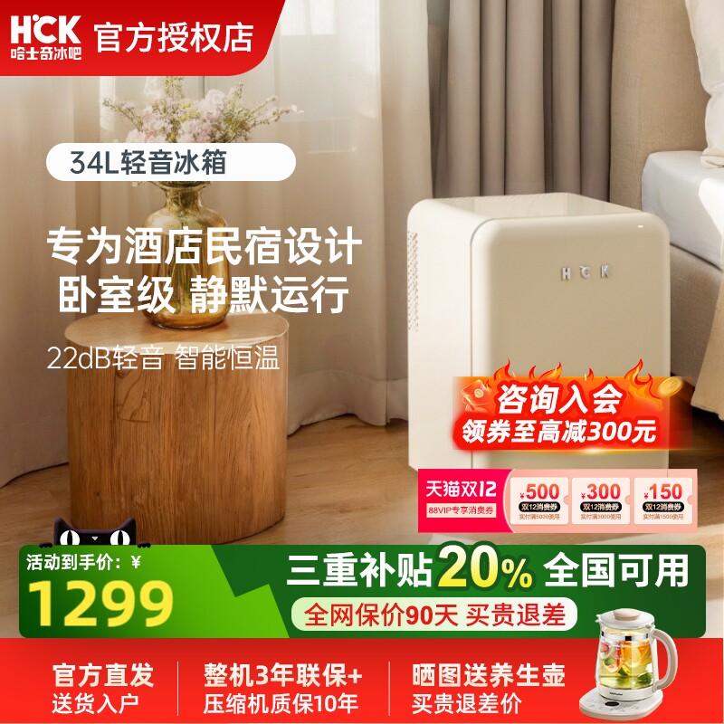 HCK哈士奇复古冰箱34L高颜值家用静音小型单门冷藏民宿酒店办公室
