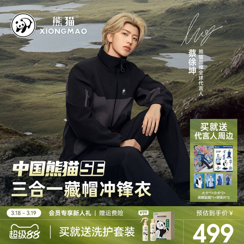 蔡徐坤同款熊猫冲锋衣女外套2025新款三合一防风水抓绒户外骑行服