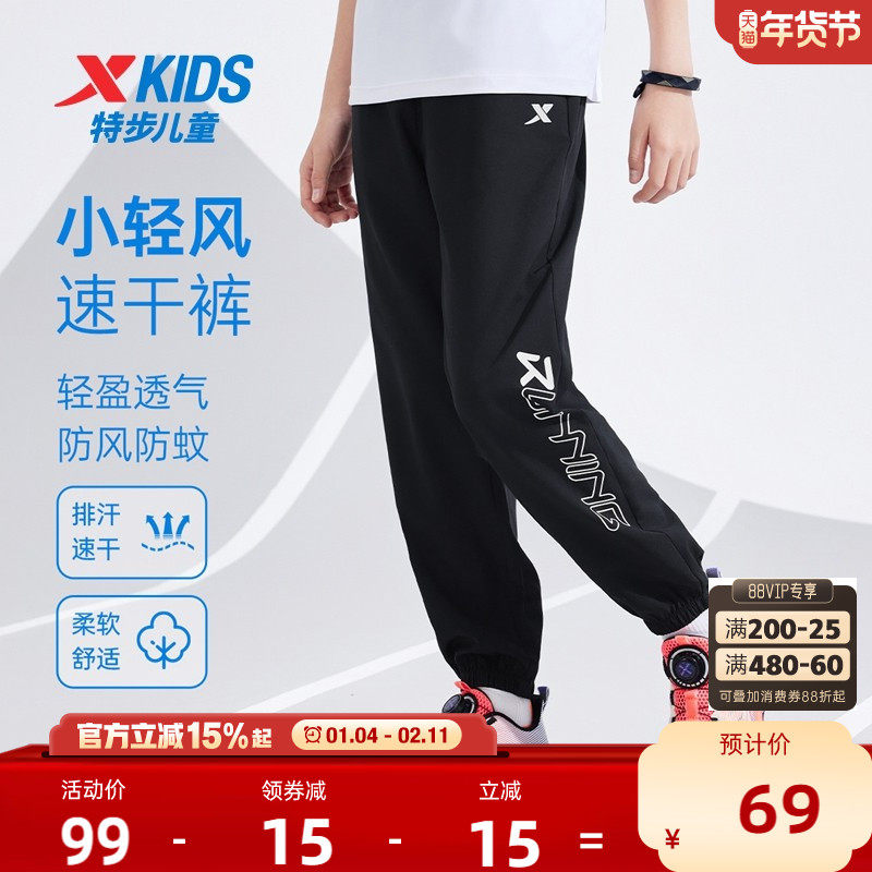 特步童装儿童运动裤中大童速干裤子2025夏季新款男童防蚊裤长裤子