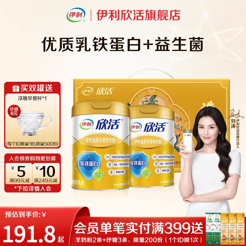 伊利欣活中老年奶粉高钙营养品成人奶粉送礼老年人正品官方旗舰店