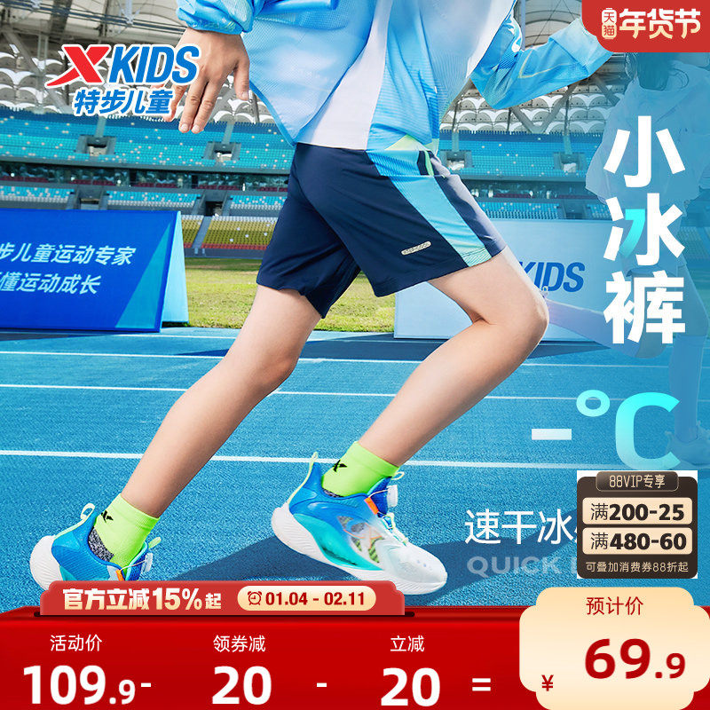 氢风|特步童装男童速干短裤2025夏季新款儿童凉感五分裤大童裤子