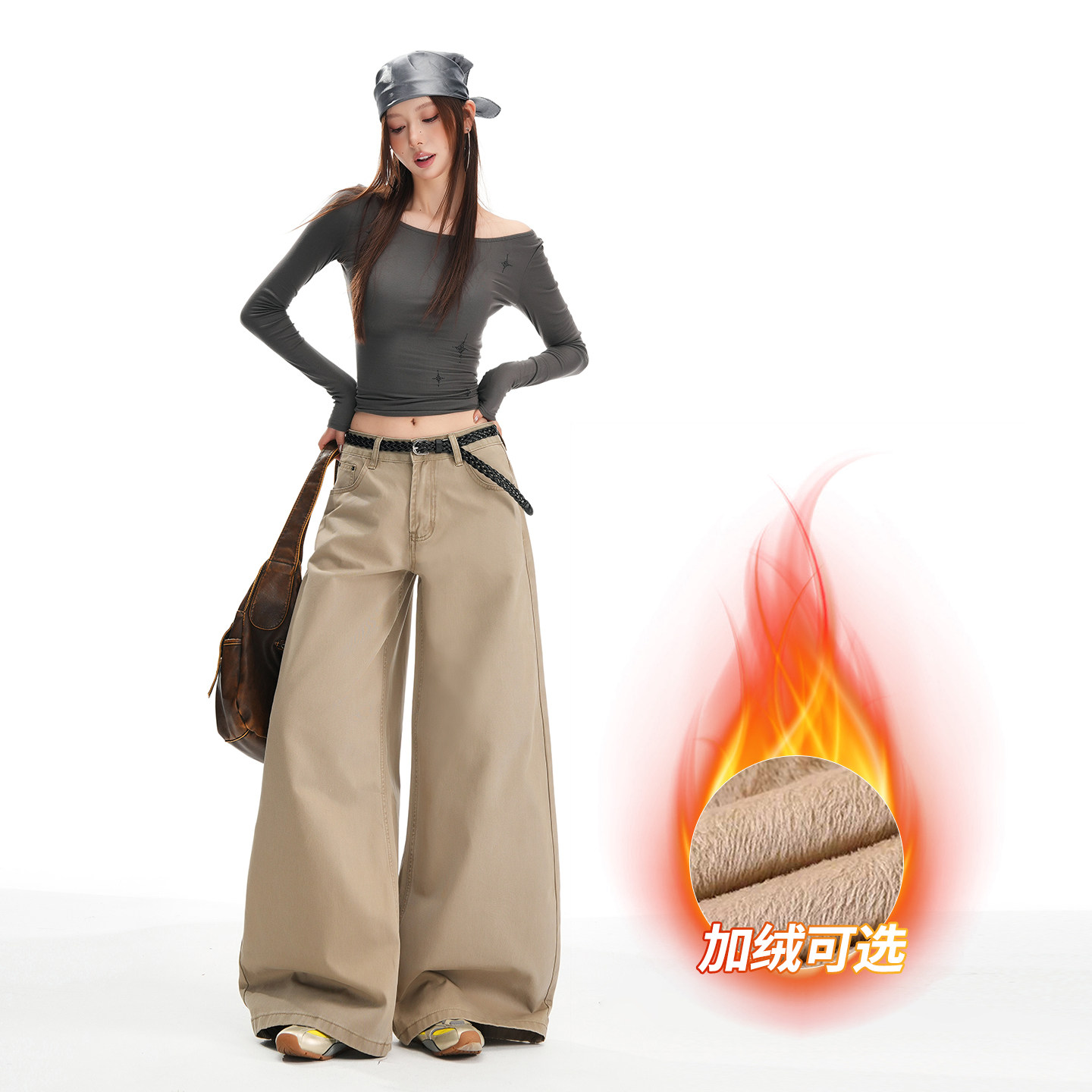 王家有鱼秋冬新款加绒阔腿裤2025百搭修身显瘦宽松直筒牛仔裤子女