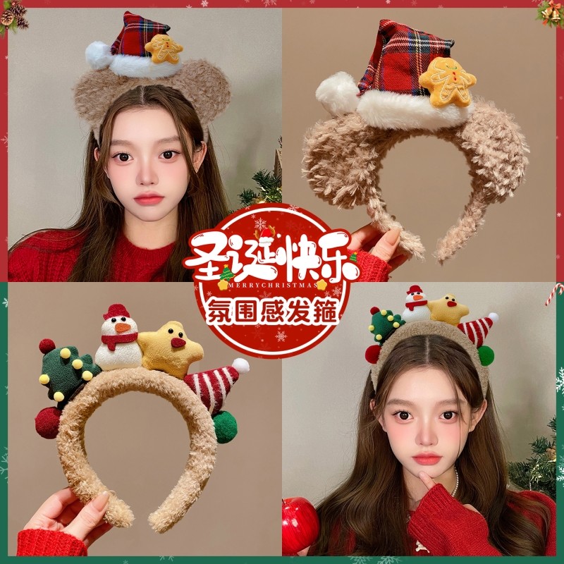 圣诞节毛绒发箍女可爱圣诞老人造型头箍拍照表演氛围感头饰卡通风