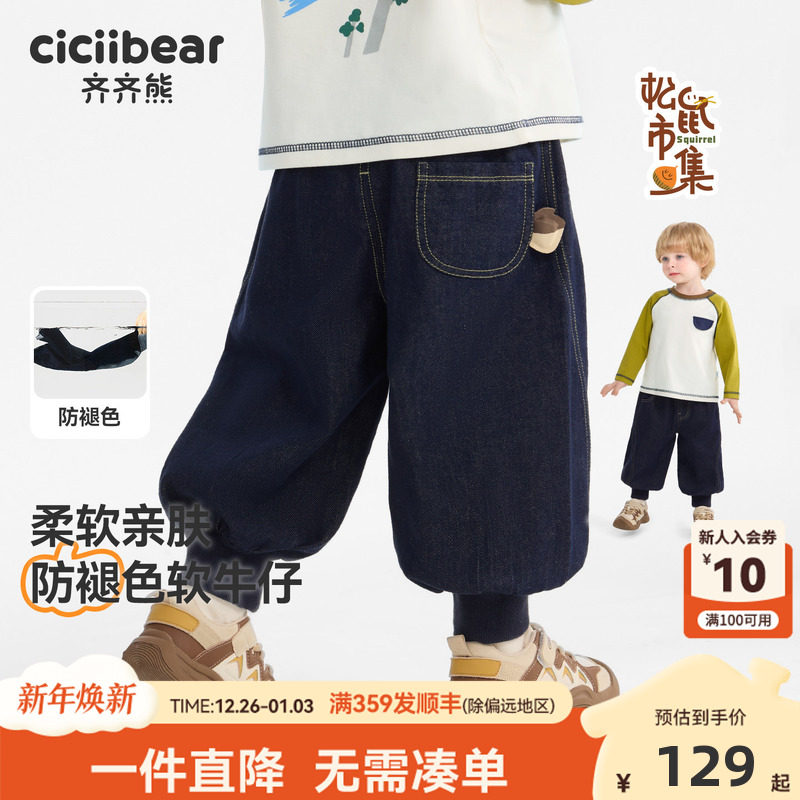 [520G一体绒]齐齐熊男童牛仔裤加绒加厚冬款宝宝裤子儿童长裤休闲