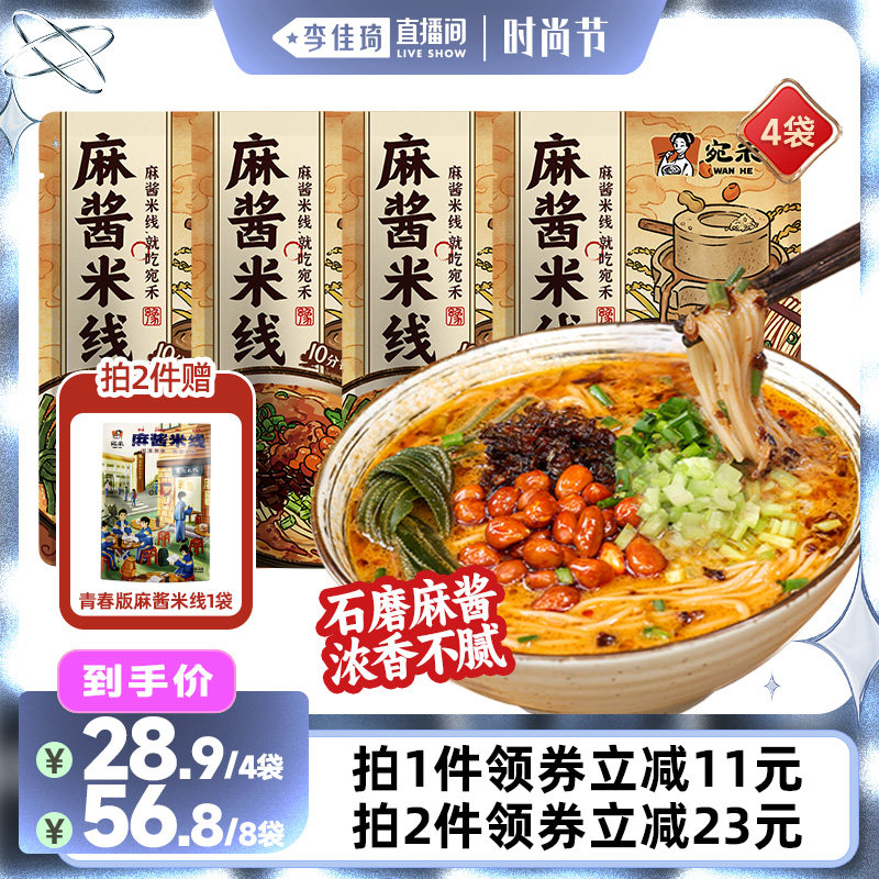 【李佳琦直播间时尚节】宛禾麻酱米线河南特色米线速食袋装243g