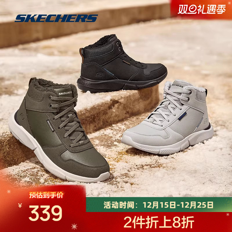 斯凯奇秋季新款男士绑带高帮鞋舒适保暖加绒柔软休闲鞋耐磨运动
