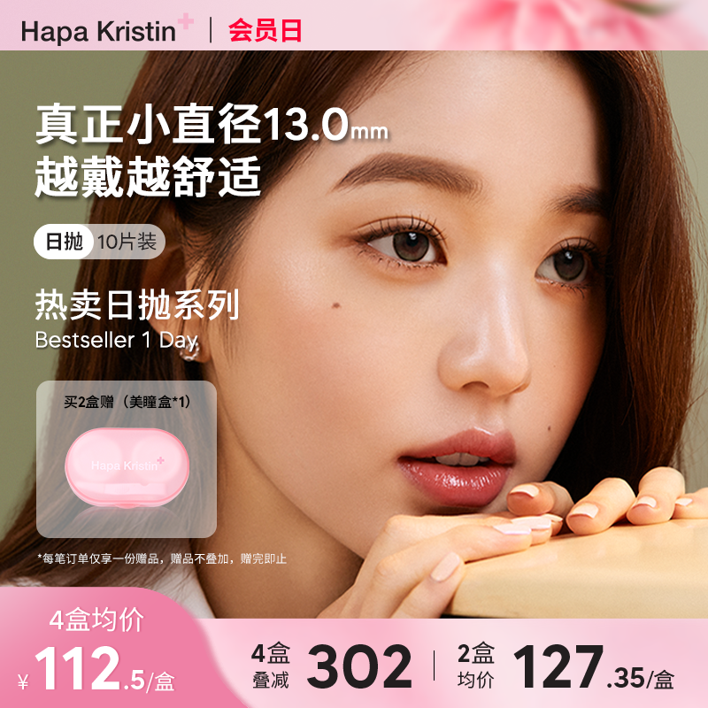 【新品】Hapa Kristin美瞳日抛隐形眼镜大直径小圆棕灰小光环近视