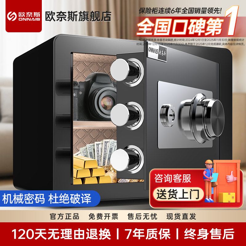 欧奈斯机械锁密码保险柜老式家用保险柜45cm全钢小型防盗钥匙机械保险箱25/30/40cm入柜保管箱办公室文件柜