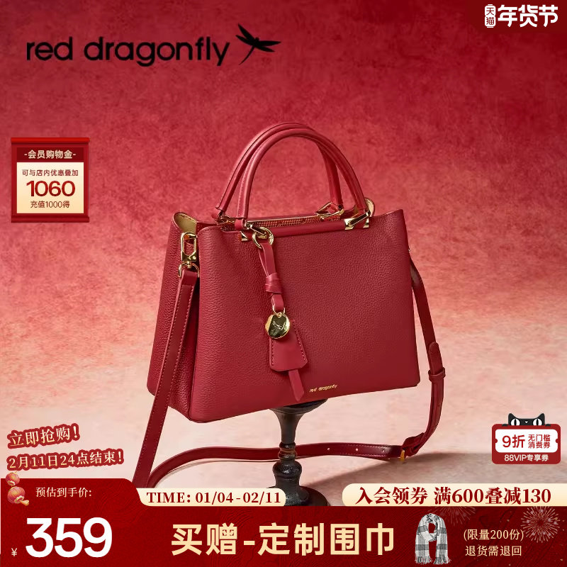 【新年礼物】红蜻蜓妈妈婚包女真皮红色结婚喜婆婆婚宴中年手提包