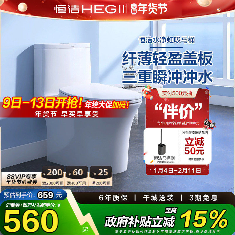 【政府补贴15%】恒洁马桶家用节水超薄水箱坐便器505