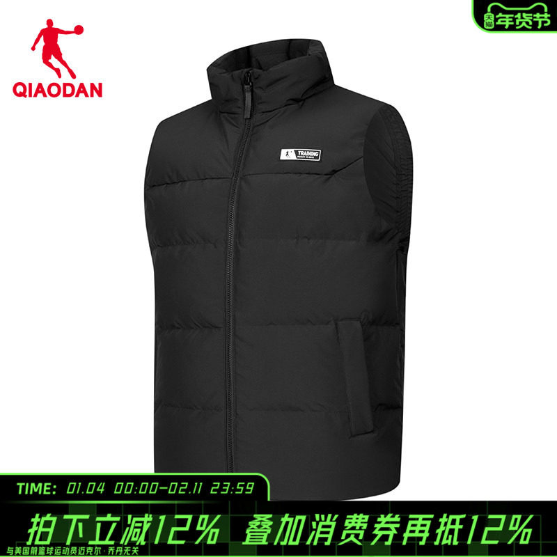 【商场同款】乔丹保暖羽绒马甲外套男2026冬新款黑色马夹3244068