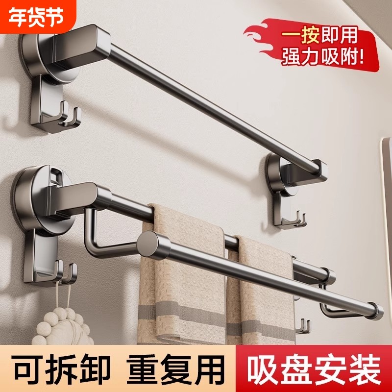 吸盘毛巾架子卫生间免打孔浴室毛巾拖鞋收纳挂架壁挂洗手间单双杆