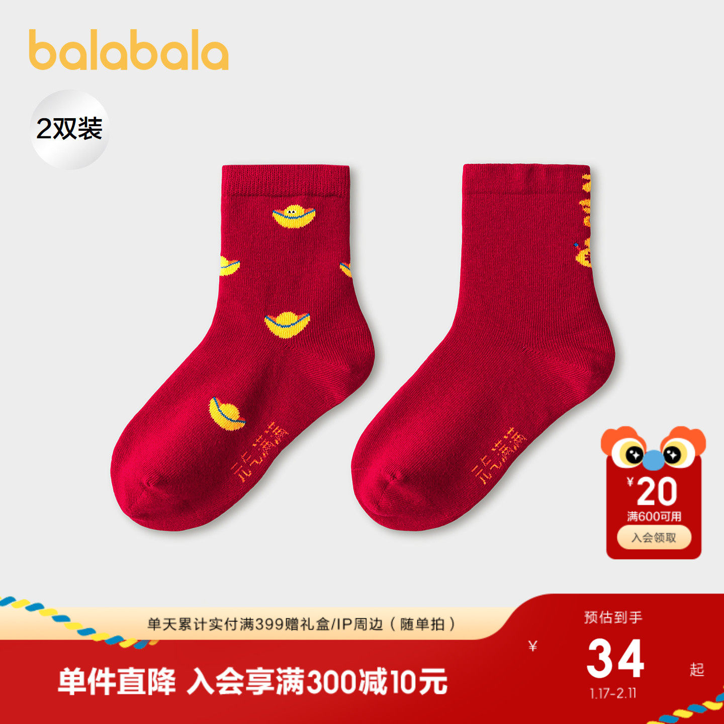 【商场同款】巴拉巴拉儿童袜子春秋男童棉袜中筒袜提花红色拜年服