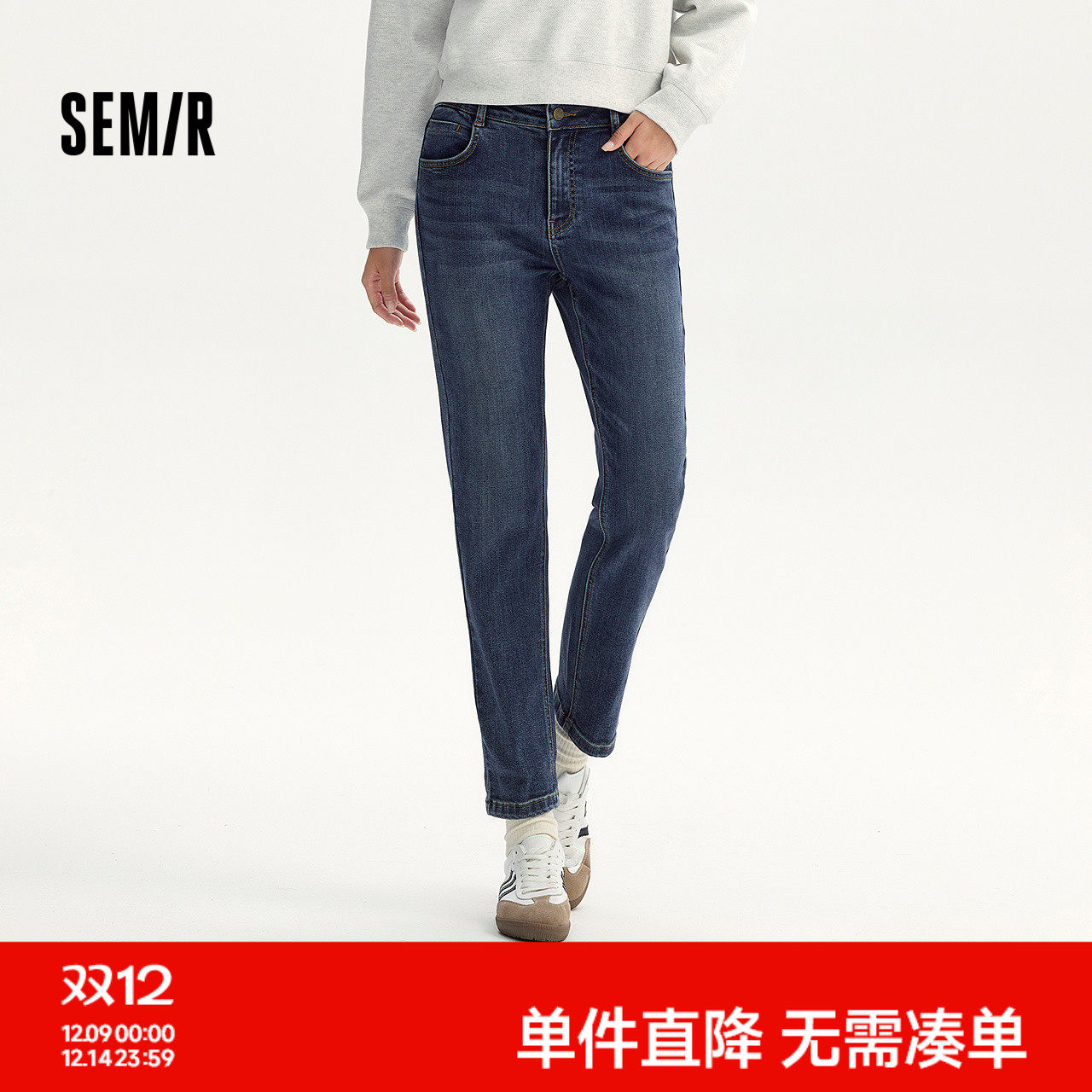 森柔牛仔|森马牛仔裤女磨毛长裤女士潮流秋休闲简约小直筒裤时尚
