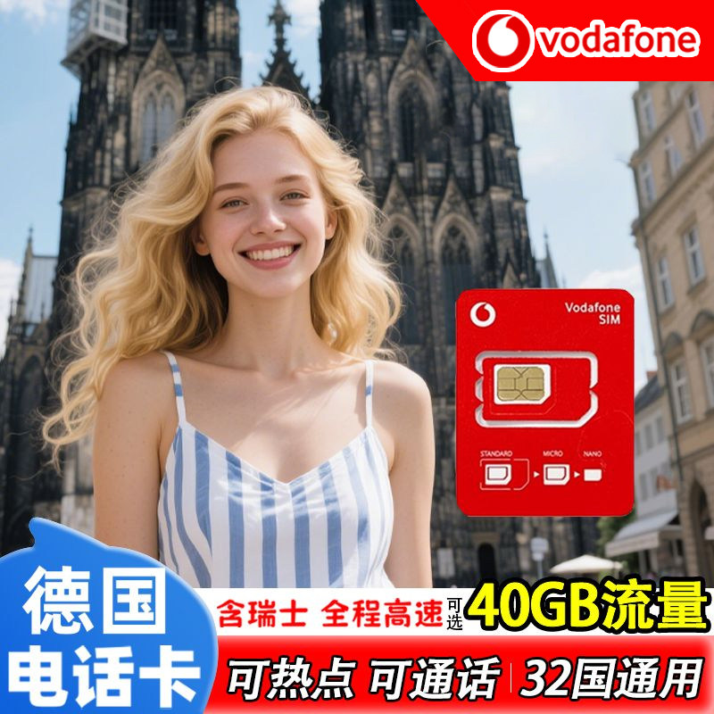 德国电话卡欧盟多国通用vodafone5/4g手机流量上网卡欧洲旅游卡