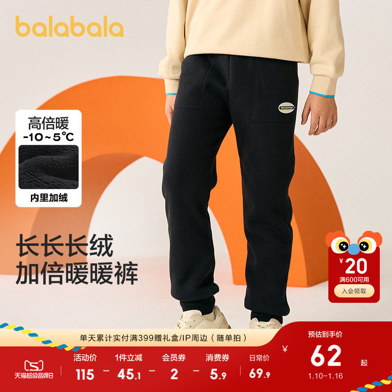 巴拉巴拉童装儿童长裤男童裤子女童大童秋冬加绒加厚防风洋气保暖