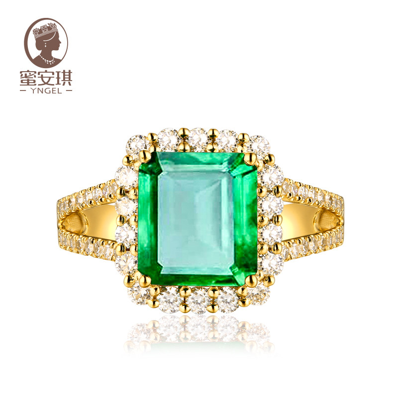 蜜安琪 2克拉天然祖母绿宝石戒指 轻奢时尚女彩宝 18K金镶钻石