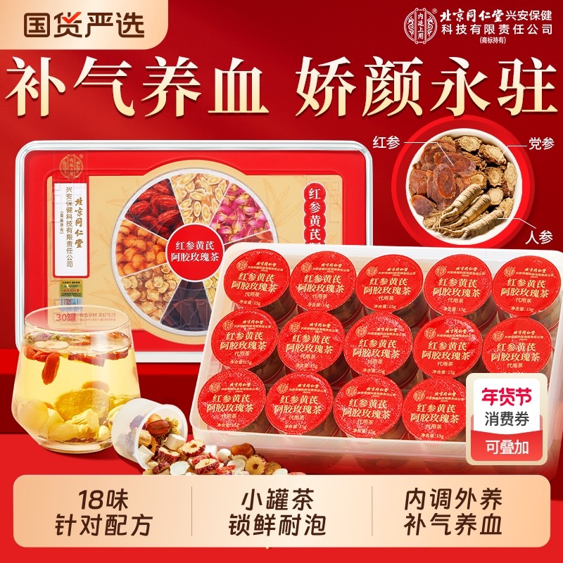 北京同仁堂红参黄芪玫瑰花红枣桂圆枸杞茶补气养血调理女人养生茶