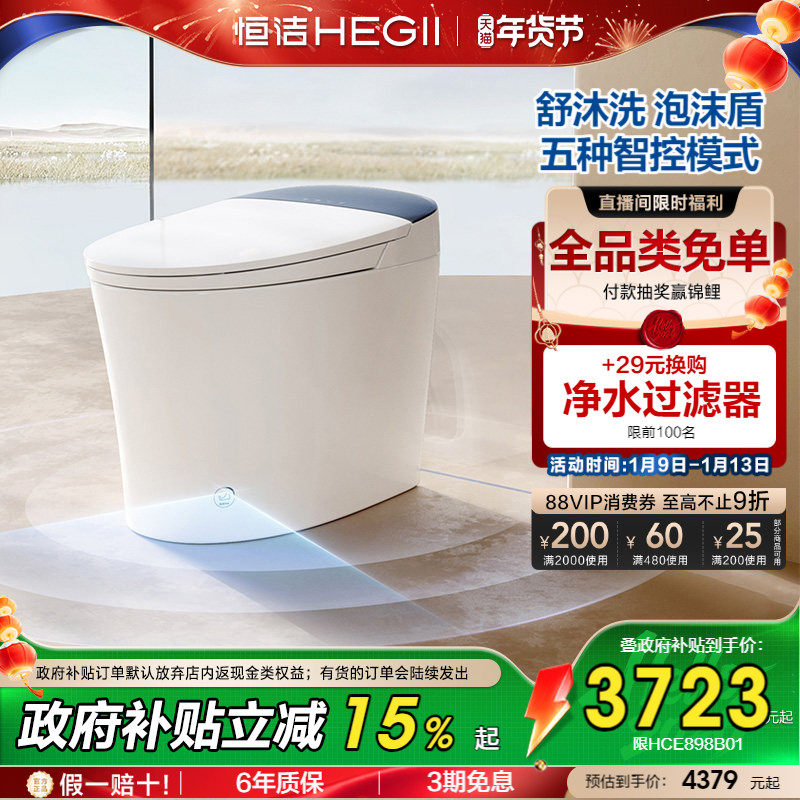 【政府补贴】恒洁泡沫盾翻盖翻圈智能马桶舒沐洗自由版