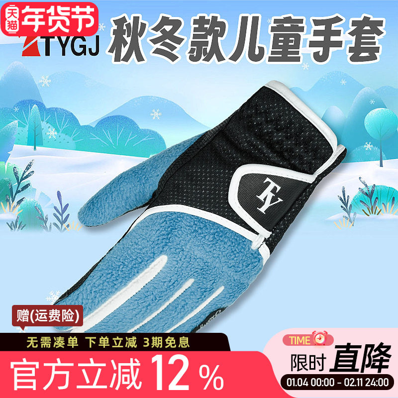 高尔夫手套儿童保暖防滑手套 摇粒绒男女童防寒手套 可触屏1双装