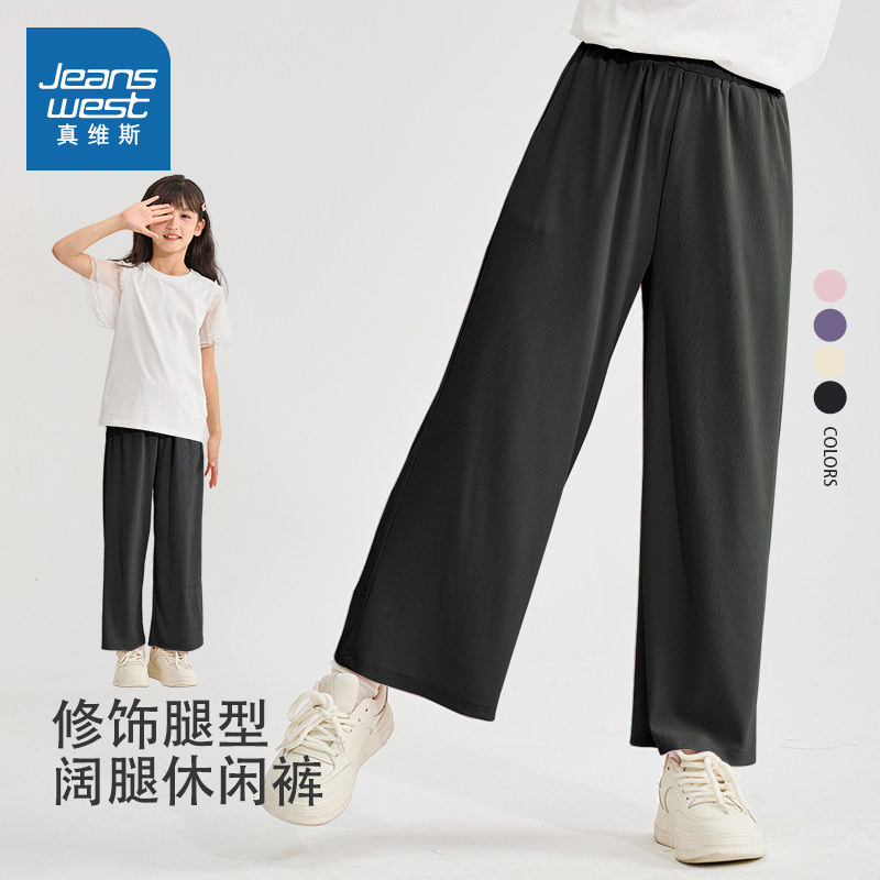 真维斯童装女童裤子夏款2025新款洋气女孩黑色凉感长裤儿童阔腿裤