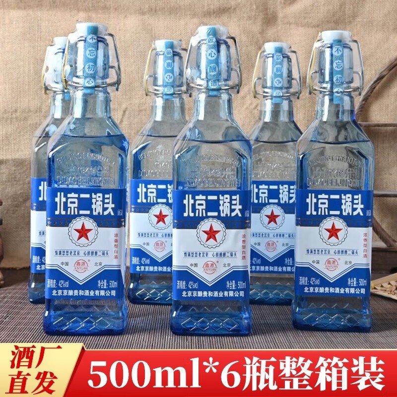 红星二锅头蓝瓶绵柔8纯粮43度750ml*6瓶整箱清香型白酒纯粮口粮酒