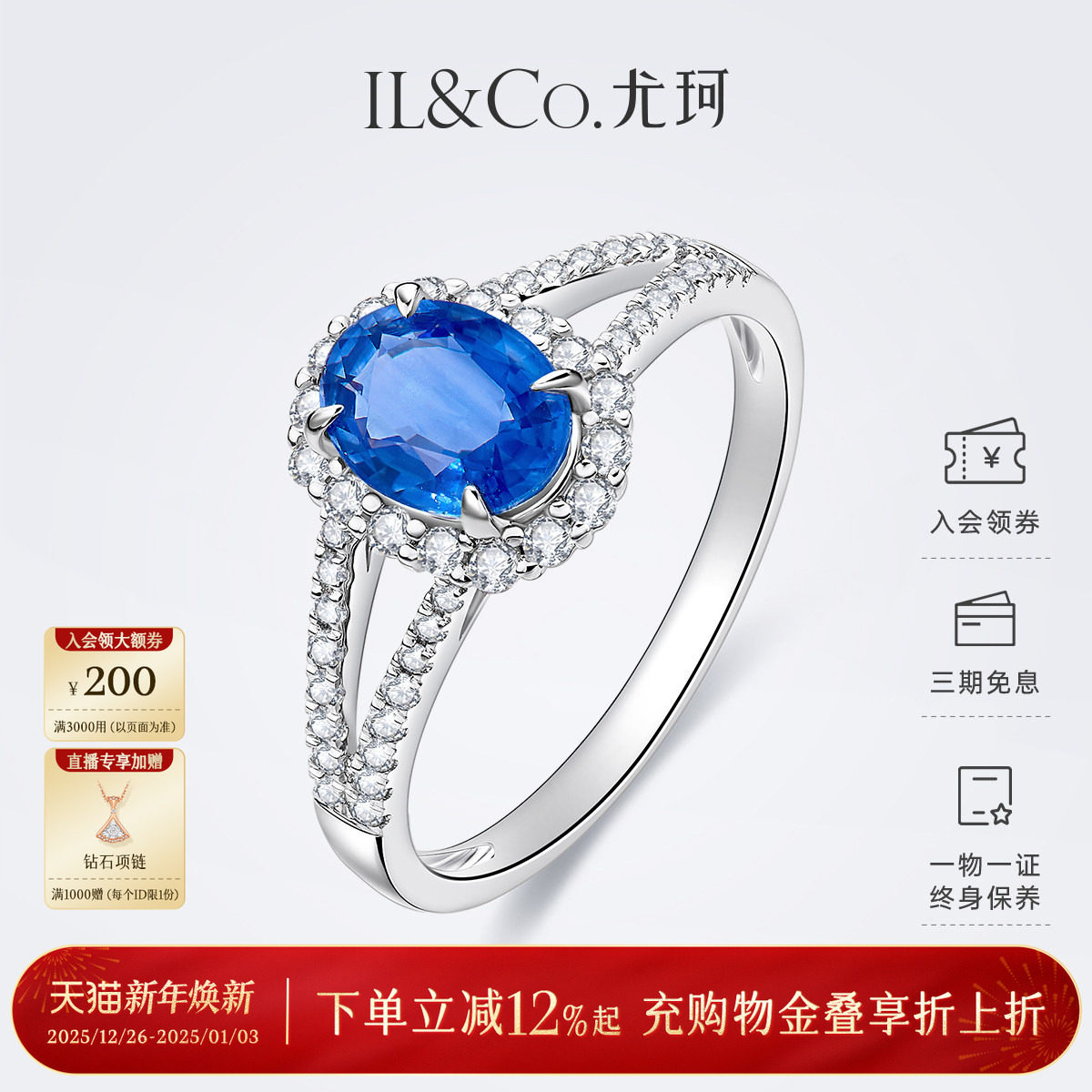 ILCO尤珂「星桥之约」天然蓝宝石戒指白18k金镶嵌真钻石彩宝女戒