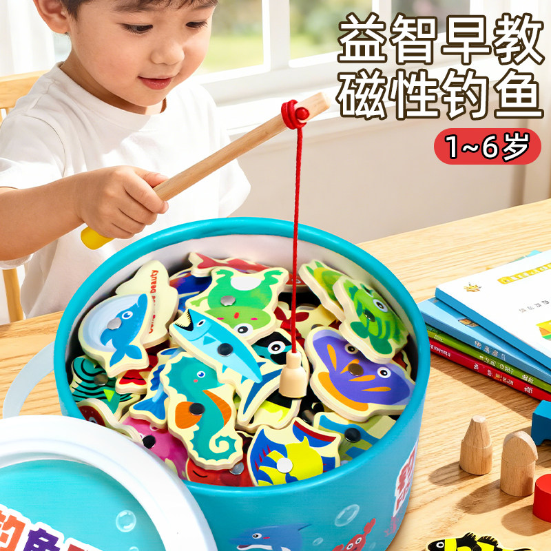 儿童钓鱼玩具磁吸木质1到3岁早教宝宝益智开发大脑男孩女周岁礼物