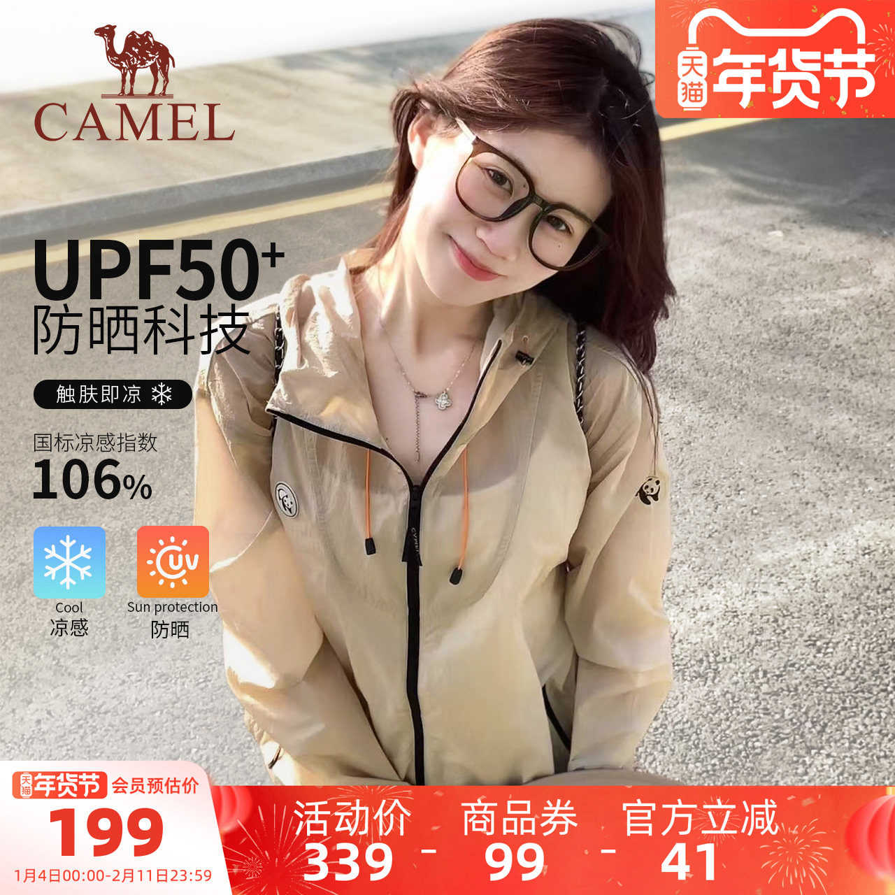 骆驼熊猫防晒衣女装夏季新款外套户外防紫外线轻薄凉感透气防晒服