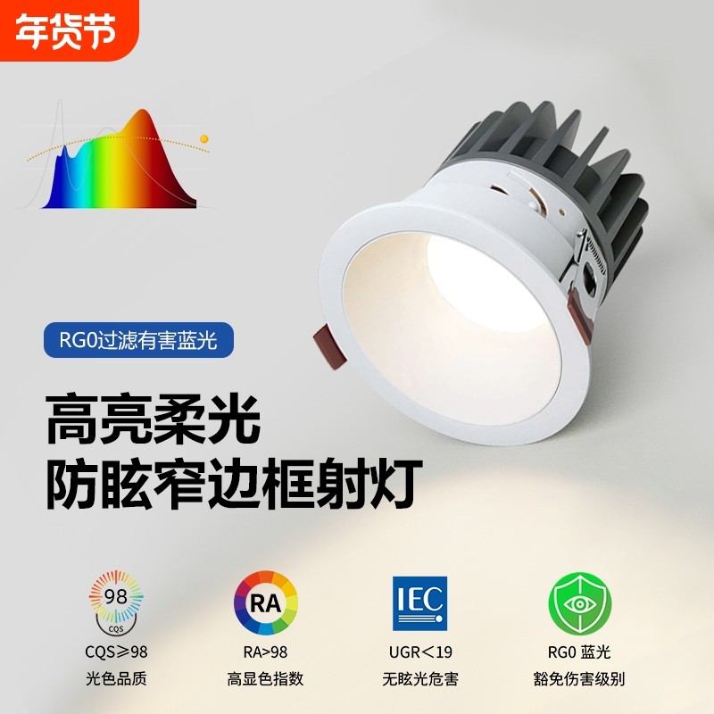 全光谱宽边射灯led客玄关厅家用嵌入式cob深防眩射灯筒灯无主灯