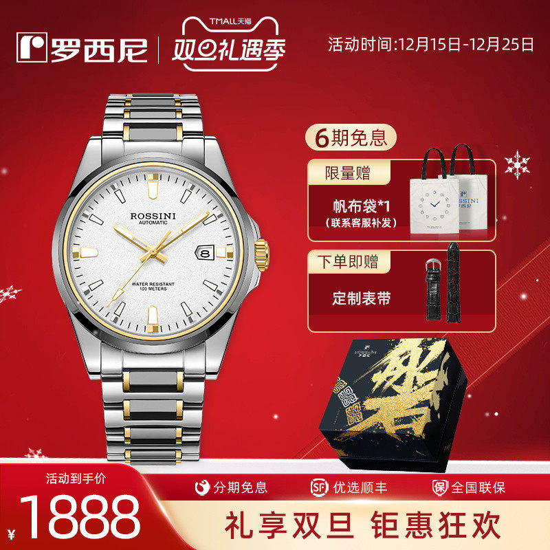 【圣诞礼物】2025年新款罗西尼手表男钨钢表带间金机械男表送男友