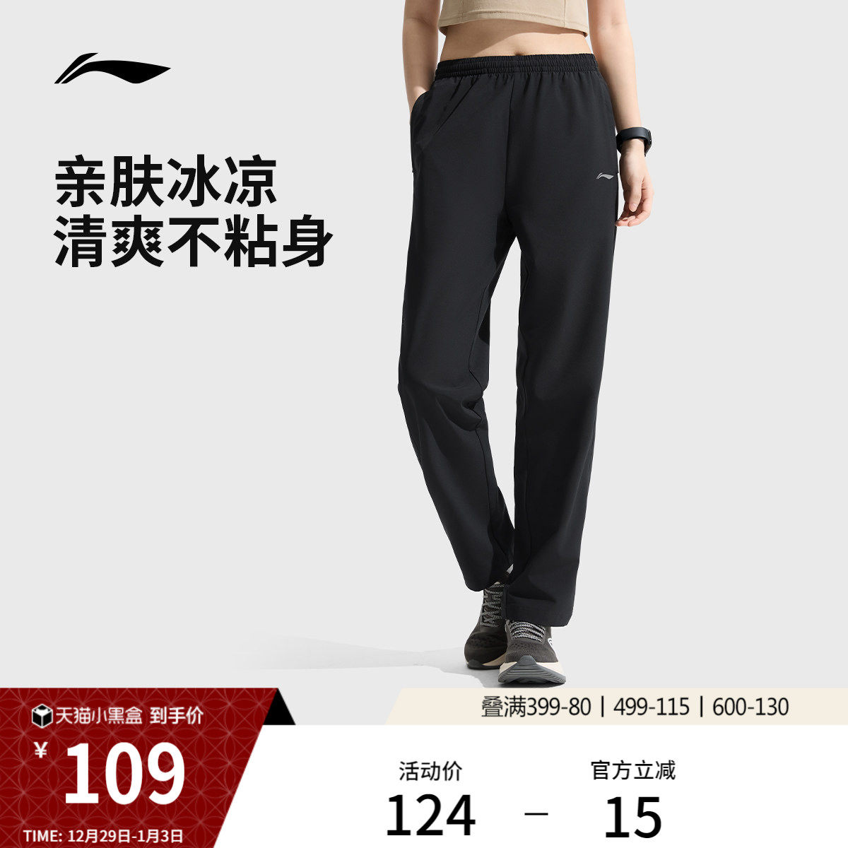 李宁速干裤女款跑步裤透气休闲训练裤子女直筒运动裤梭织运动长裤
