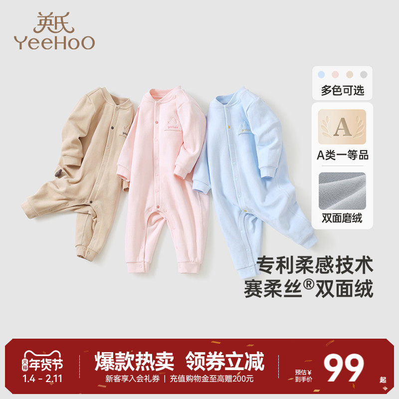 英氏新生儿婴儿衣服秋冬款双面绒保暖连体衣加绒爬服冬季宝宝衣服