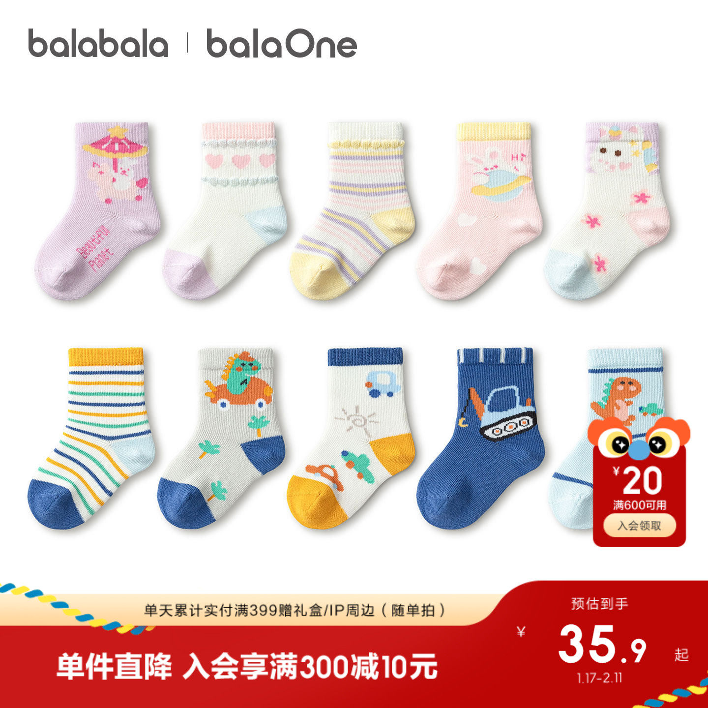 巴拉巴拉儿童袜子宝宝春秋新品婴幼儿中筒袜柔弹无骨手工缝五双装