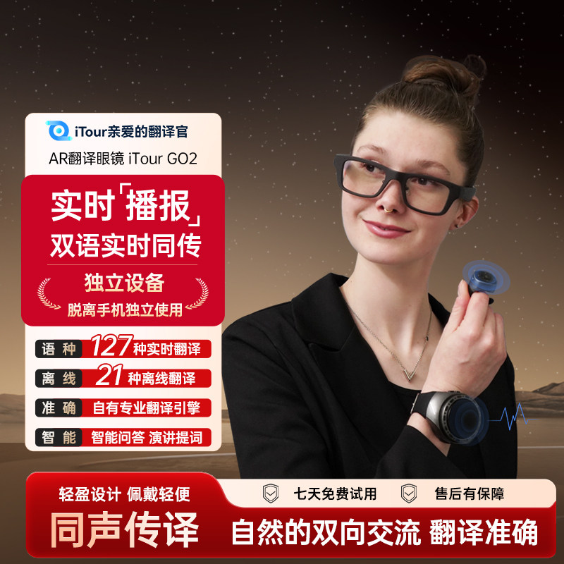 iTour亲爱的翻译官AR智能眼镜 实时对话同声AI翻译英语在线离线