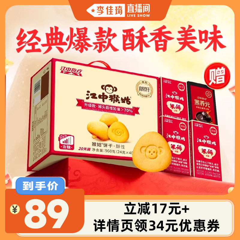 【李佳琦直播间】江中猴姑饼干酥性20天猴头菇零食礼盒新年送礼