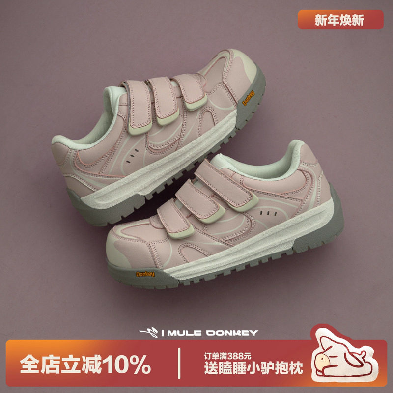 多嘴驴Donkey粉色丑萌板鞋女款德训鞋甜美可爱大头鞋魔术贴面包鞋