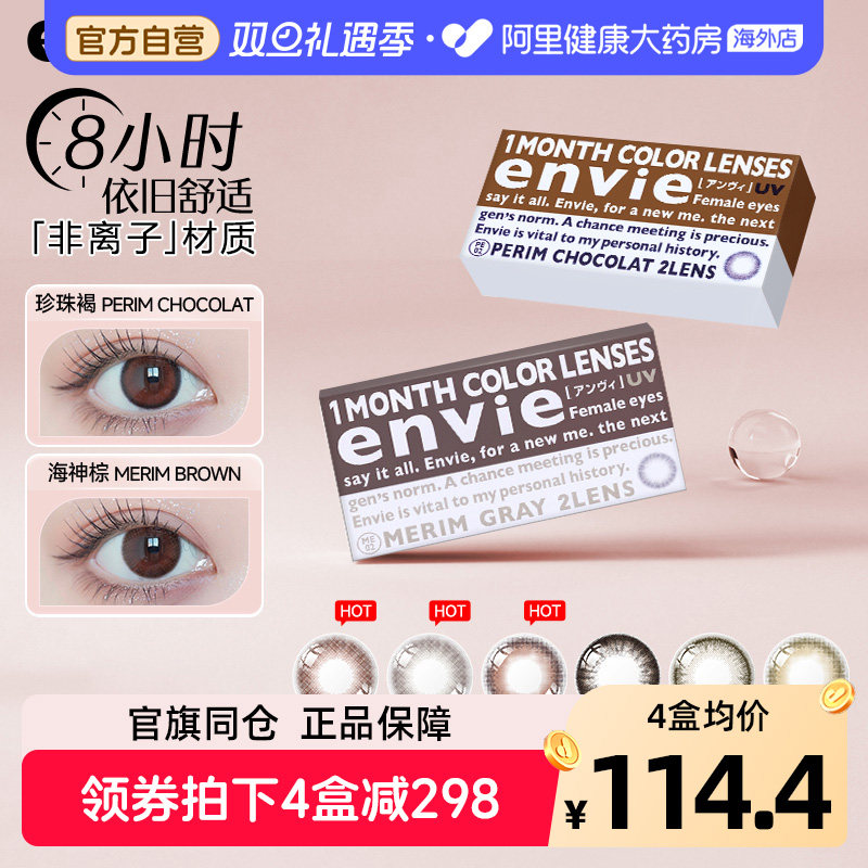 envie美瞳月抛2片大小直径彩色隐形近视眼镜盒官网正品非日抛