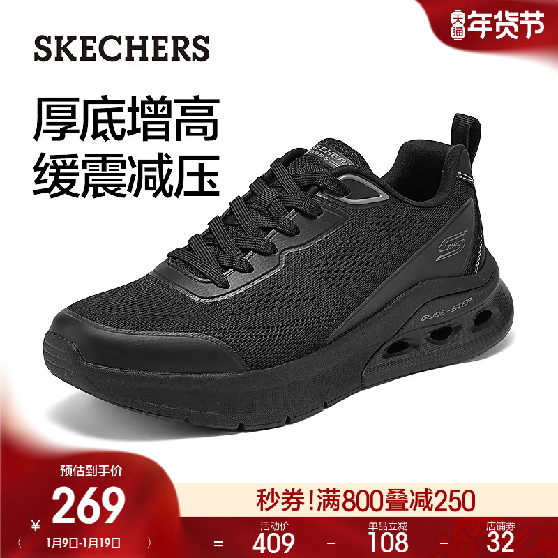 斯凯奇春季男子百搭时尚厚底增高网面休闲鞋气垫减震运动鞋