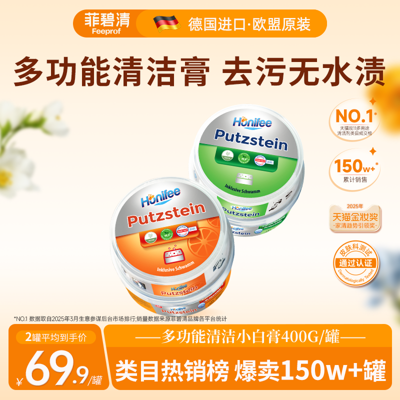 菲碧清不锈钢清洁膏厨房浴室玻璃去水垢小白鞋清洁剂多功能小白膏