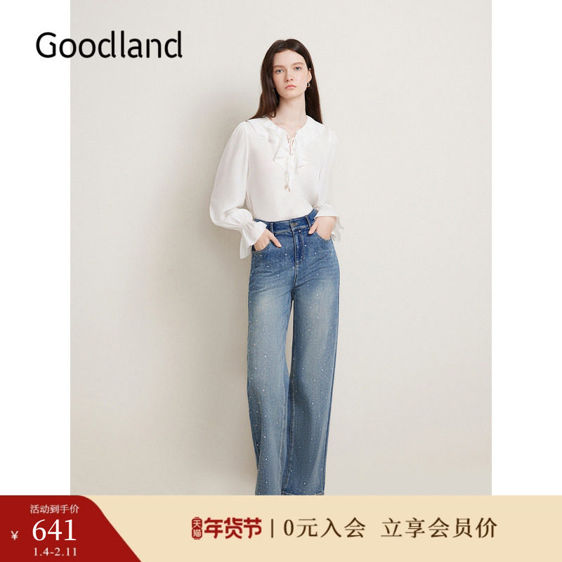 【醋酸系列】Goodland美地春季荷叶边系带衬衫白色上衣