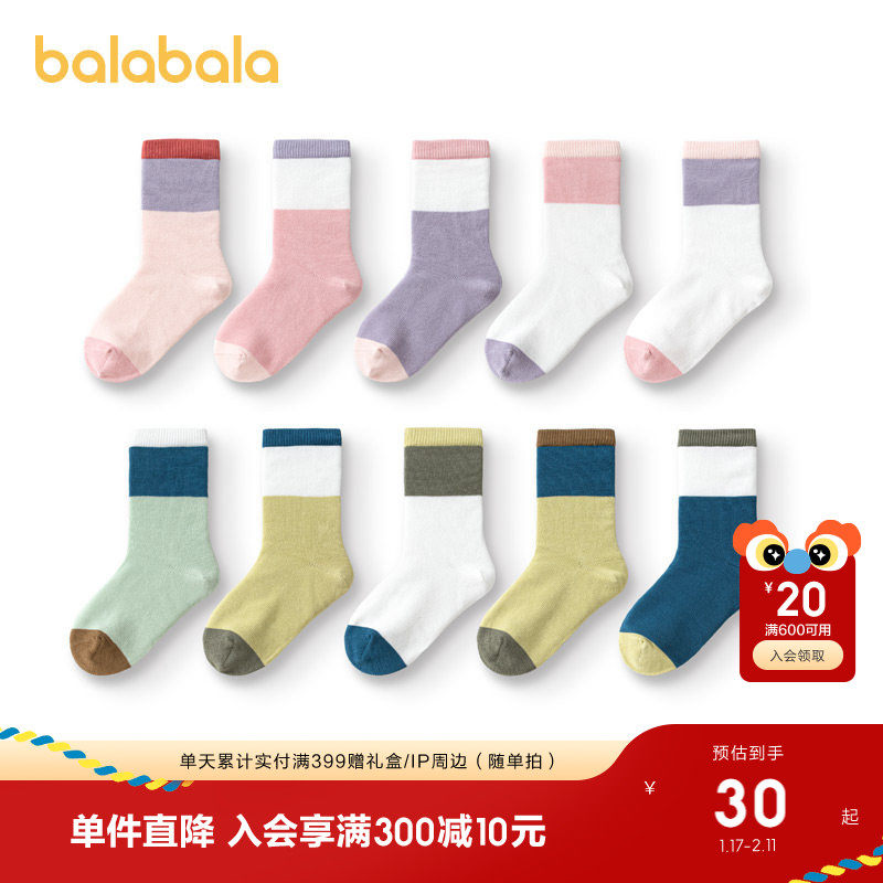 巴拉巴拉儿童袜子男童女童棉袜儿童宝宝学生中筒打底五双装春秋装