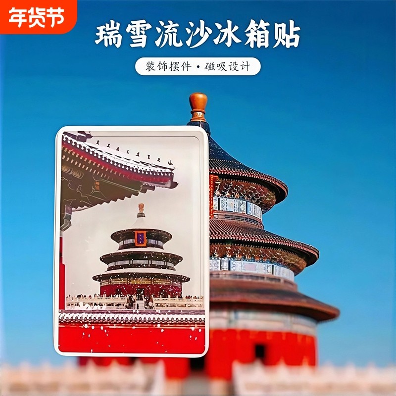流沙飘雪冰箱贴文创北京故宮天坛旅游纪念亚克力磁吸景点雪景装饰