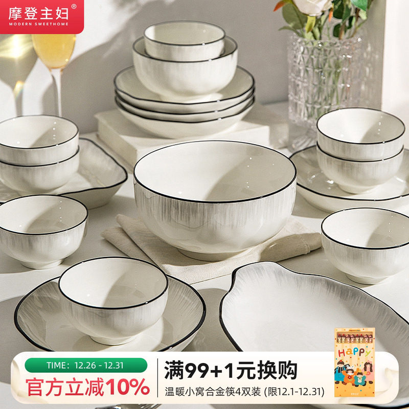 摩登主妇餐具2025新款釉下彩乔迁新居高颜值碗具碟筷碗盘套装家用