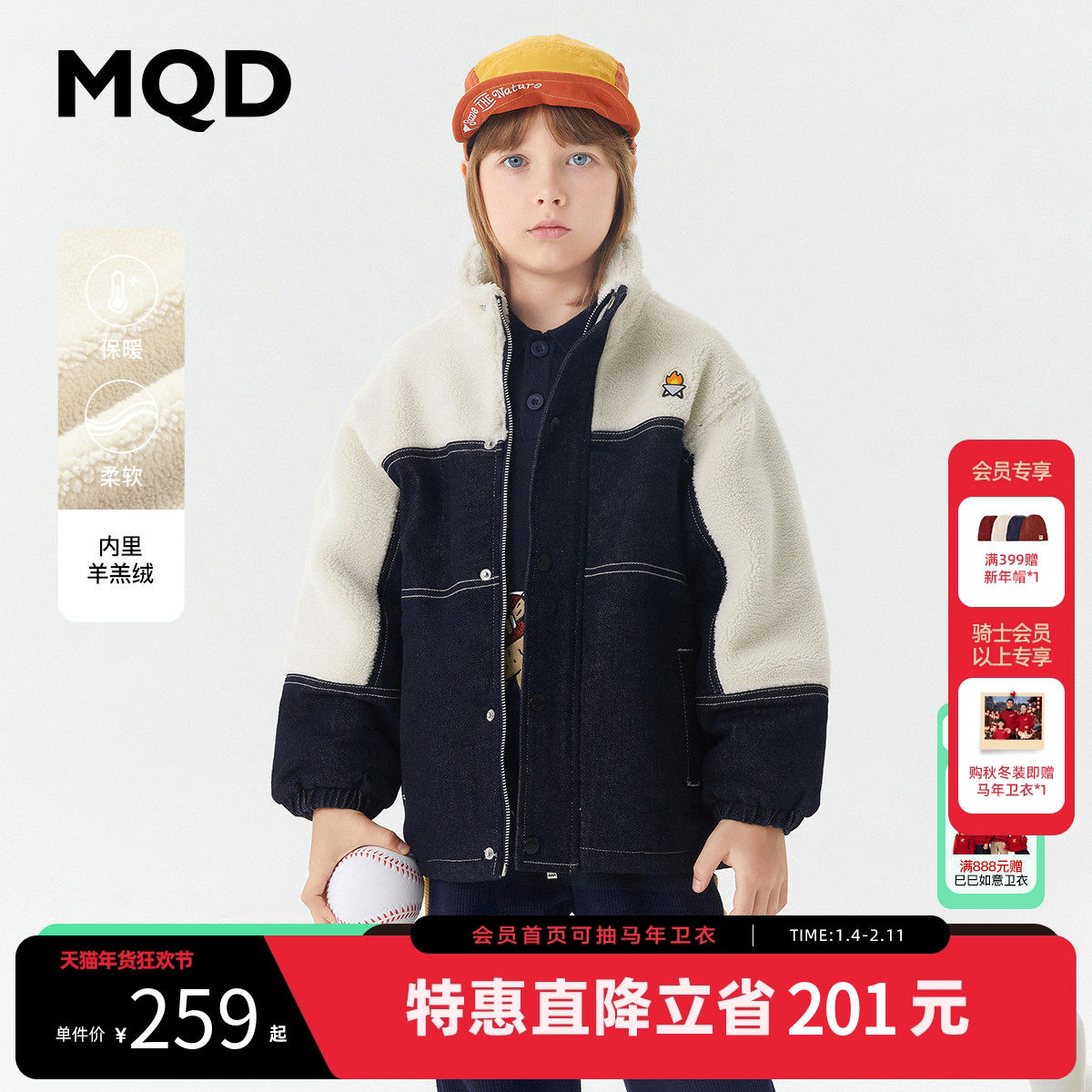 【设计师系列】MQD男童加绒外套秋冬款儿童加厚仿羊羔绒上衣